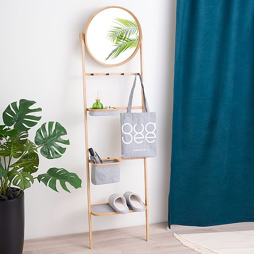 選擇含掛勾、置物架或是含留言板的掛鏡,多功能的設計可增加玄關的收納能力。鏡子的反射不僅可以讓窄小陰暗的玄關有放大提亮的效果,不同的擺放位置透過鏡面反射還能創造空間的層次感。