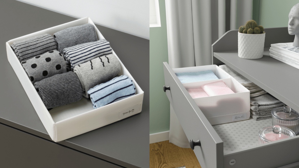 各種尺寸的收納盒,適合放置襪子、內衣、內褲、手帕等小物。
