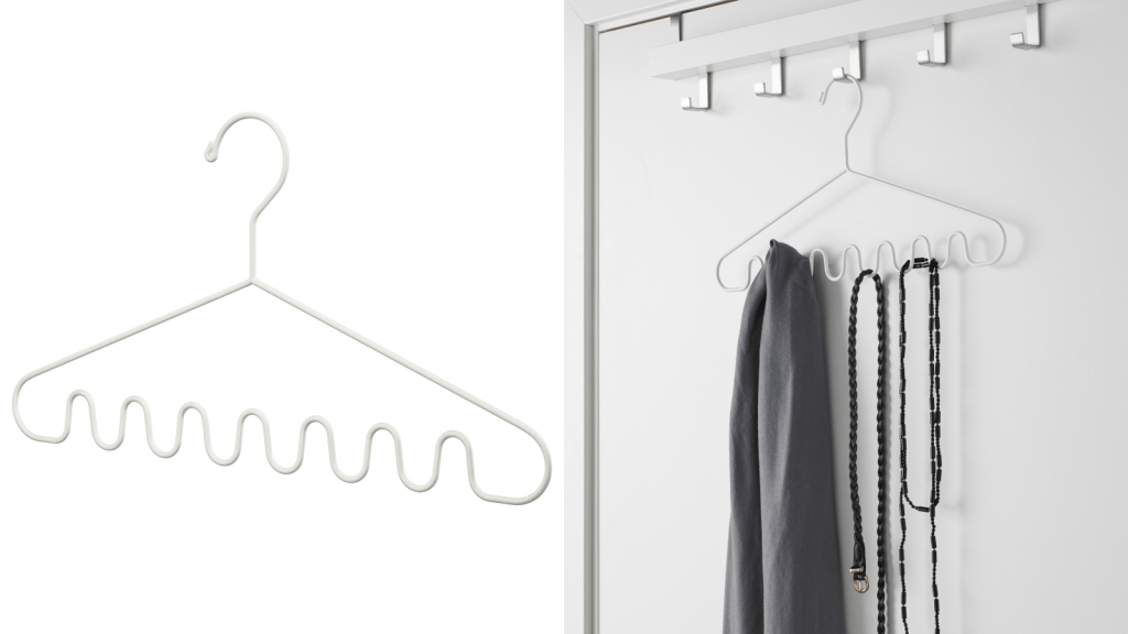 可掛置圍巾、皮帶、領帶等配件,波浪的設計吊掛配件,但不建議吊太滿。