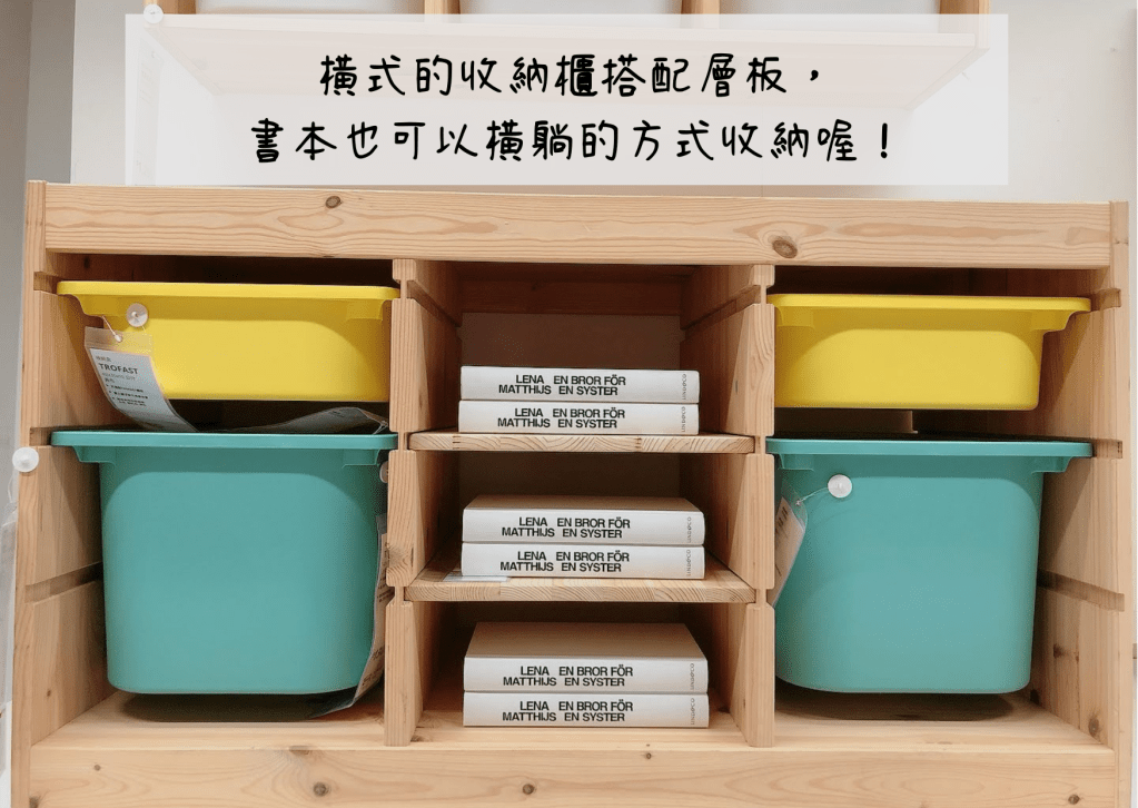 這系列的收納櫃非常實用,本身的設計就可以直接當做書櫃使用,另外可以依照自己需求添加多種配件(抽屜、拉門、置物籃…等)來擺放玩具。