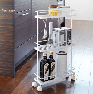 避免長輩提重物的另一個收納法就是小推車的運用,在廚房可以用小推車放不用放冰箱的鮮蔬、醬料或是工具類,讓長輩方便邊拿邊走動。